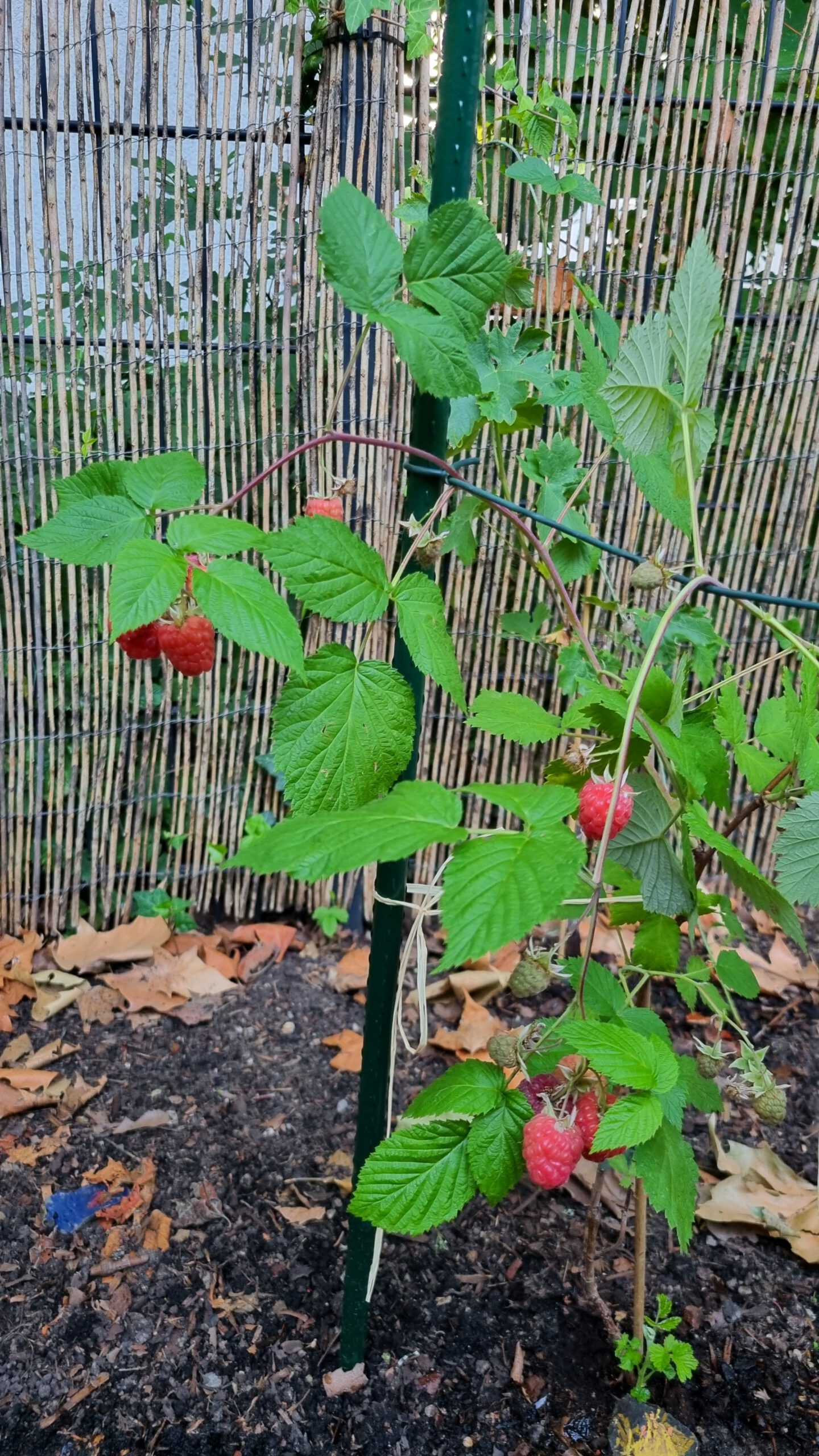 Im hinteren Beet wurden Himbeerpflanzen eingesetzt und das Beet von Unkraut und Laub befreit.