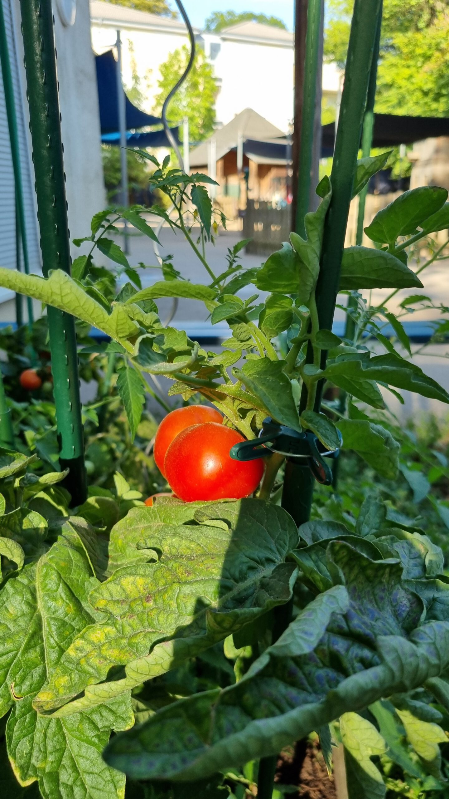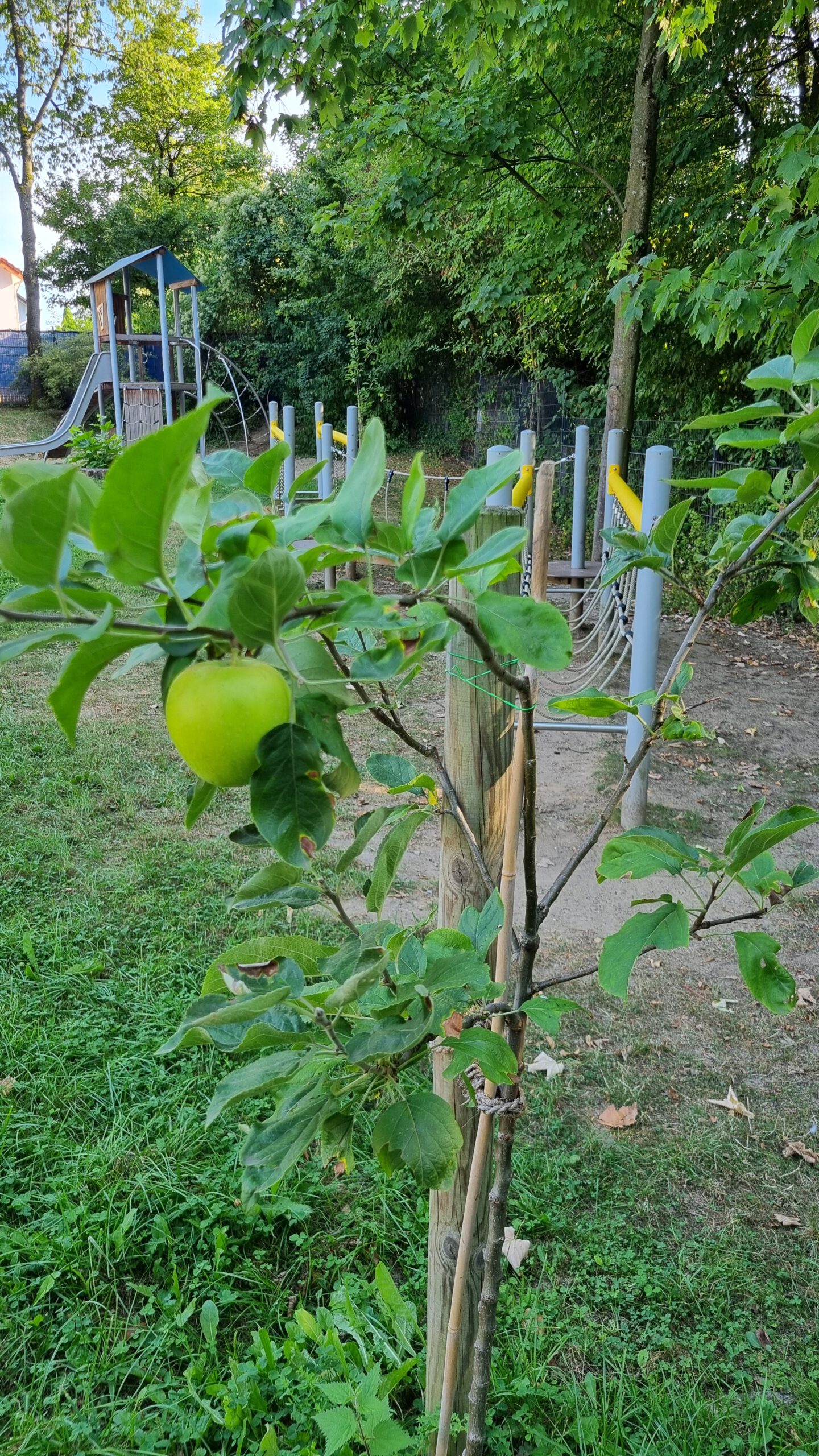 Nach den Erfahrungen mit den Schnecken in 2024 waren alle ganz gespannt, wie es dieses Jahr mit der Ernte klappt. Und tatsächlich konnten sich alle Pflanzen wirklich toll entwickeln und es konnte viele verschiedene Leckereien geerntet werden: Johannisbeeren, Erdbeeren, Jostabeeren, Tomaten, Gurken, Paprika, Radieschen und verschiedene Kräuter. Und an den Apfelbäumen hängen die ersten Äpfel.